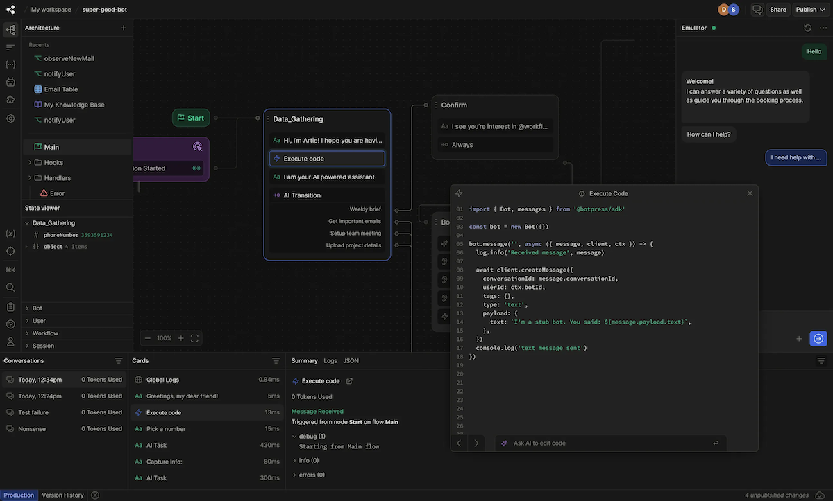- Post the first question to the bot